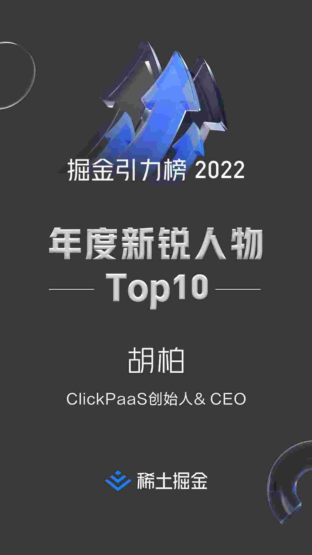 稀土掘金社区首届年度10大新锐人物榜单揭晓——小米钱包创始人、、、、、、、、、、、CEO胡柏实力登榜